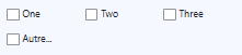 | Cases à cocher (avec "Autre") | Choix multiple, champ libre si "Autre". | Au sein du paramétrage, il est possible de définir le Min/Max sélections | |