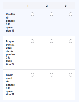 | Général | Questionnaire avec multi question et réponses communes | ||