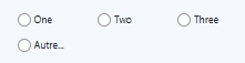 | Boutons radio (avec "Autre") | Sélection d'une seule option, possibilité d'entrer un texte libre. | ||