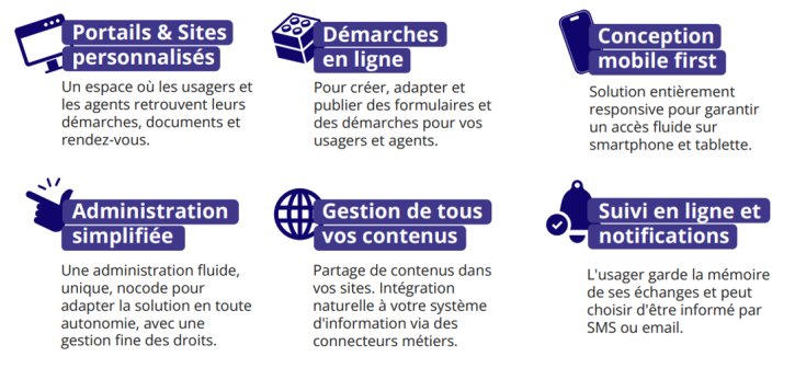 Pensée pour répondre aux usages réels, Nexys rassemble au sein d’une plateforme unique tous les leviers essentiels de l’action publique numérique :